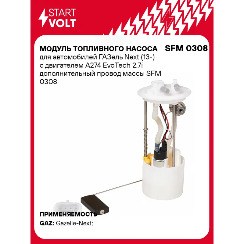 Модуль топливного насоса для автомобилей ГАЗель Next (13-) с двигателем A274 EvoTech 2.7i дополнительный провод массы SFM 0308 StartVolt