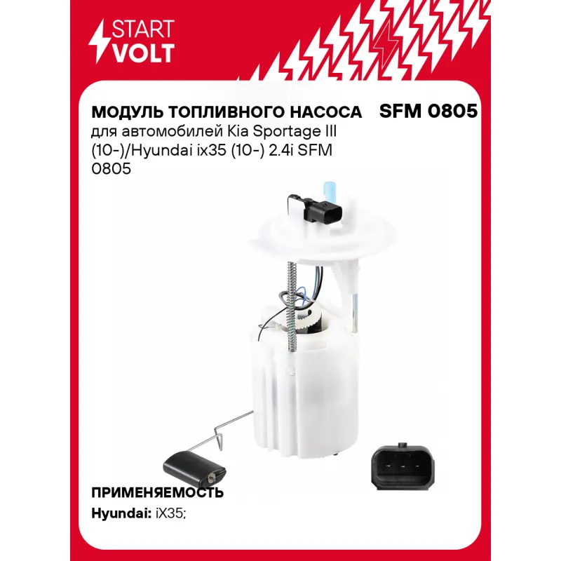 Модуль топливного насоса для автомобилей Kia Sportage III (10-)/Hyundai ix35 (10-) 2.4i Характеристики: Артикул: SFM 0805 OEM номера: 311102S500 Номинальное напряжение, В: 12 Производительность, л/ч: 115 Сила тока, А: 7.7 Номинальное давление, бар: 3 РДТ, бар: 3,5 Количество на автомобиль: 1 Подходит для авто: Hyundai iX35 (10-) Для проверки применяемости отправьте VIN автомобиля через вкладку "Есть вопросы о товаре?" Комплектация: Паспорт изделия/гарантийный талон - 1 шт Модуль топливного насоса - 1 шт Гарантия: от 1 года.