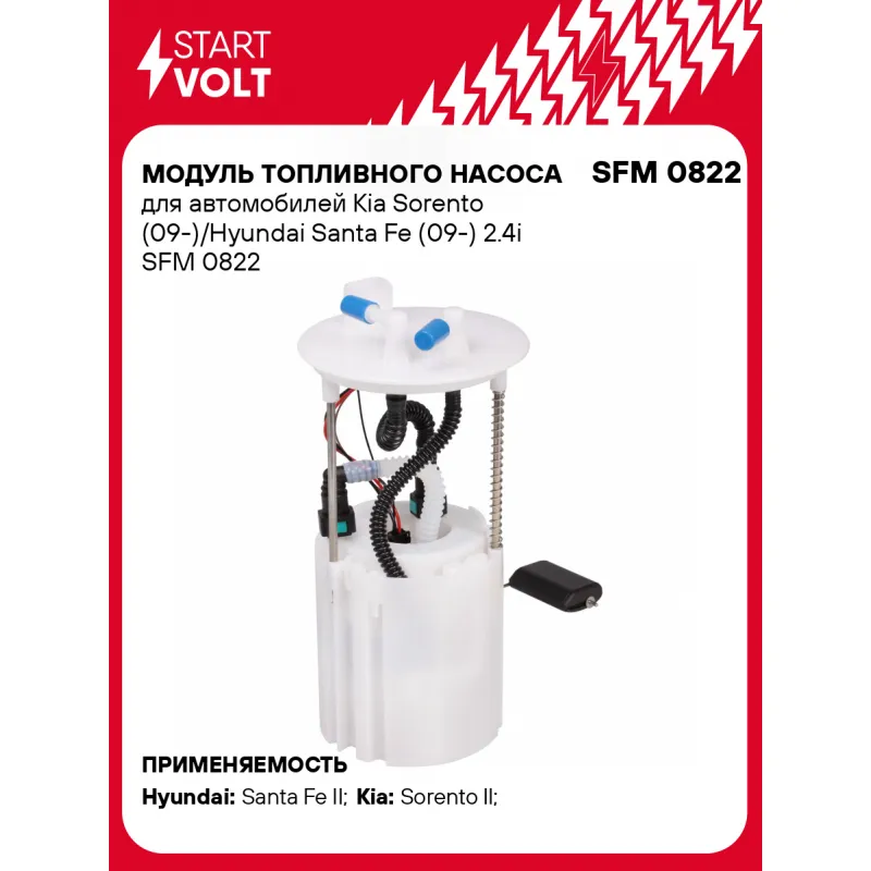 Модуль топливного насоса для автомобилей Kia Sorento (09-)/Hyundai Santa Fe (09-) 2.4i Характеристики: Артикул: SFM 0822 OEM номера: 31110-2P000 Номинальное напряжение, В: 12 Производительность, л/ч: 100 Сила тока, А: 6 Номинальное давление, бар: 3 РДТ, бар: 3,6 Количество на автомобиль: 1 Подходит для авто: Hyundai Santa Fe II (06-) Kia Sorento II (09-) Для проверки применяемости отправьте VIN автомобиля через вкладку "Есть вопросы о товаре?" Комплектация: Паспорт изделия/гарантийный талон - 1 шт Модуль топливного насоса - 1 шт Гарантия: от 1 года.
