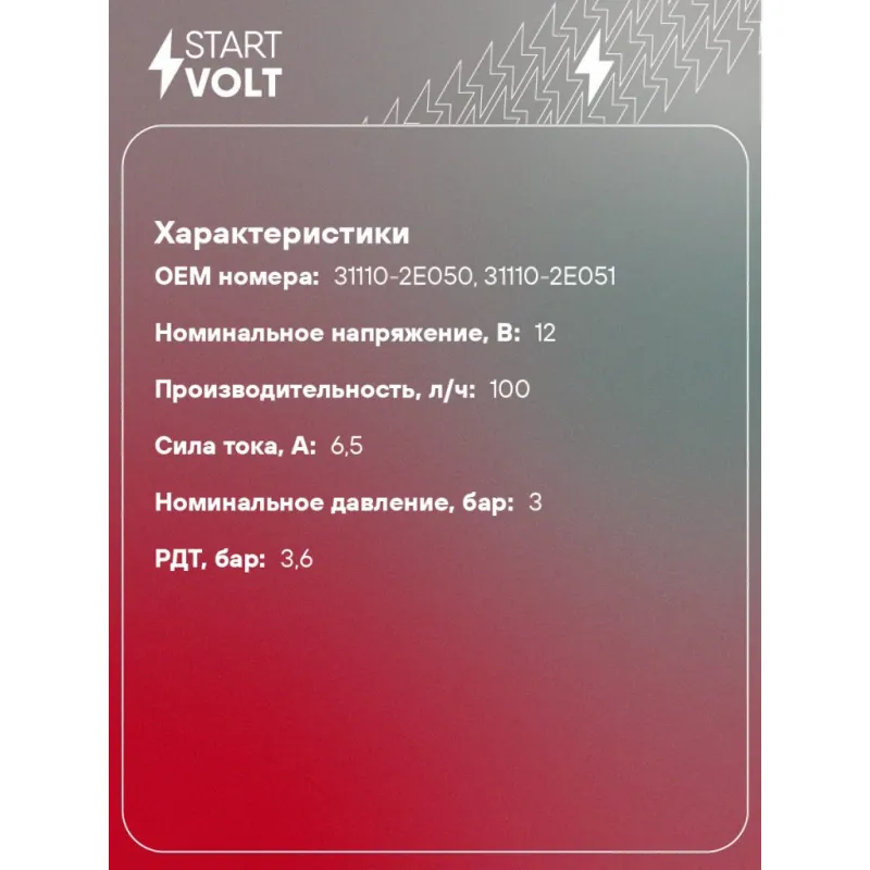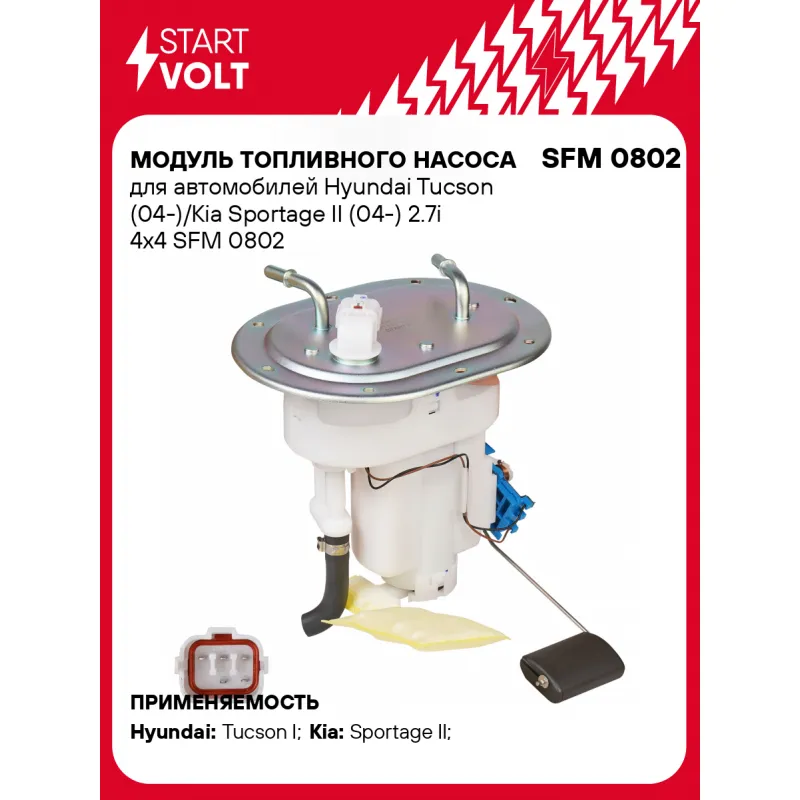 Модуль топливного насоса для автомобилей Hyundai Tucson (04-)/Kia Sportage II (04-) 2.7i 4x4 Характеристики: Артикул: SFM 0802 OEM номера: 31110-2E050, 31110-2E051 Номинальное напряжение, В: 12 Производительность, л/ч: 100 Сила тока, А: 6,5 Номинальное давление, бар: 3 РДТ, бар: 3,6 Количество на автомобиль: 1 Подходит для авт... Читать полностью →
