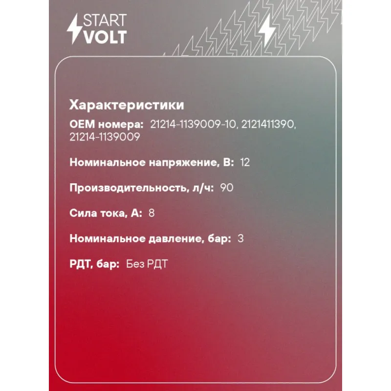 Модуль топливного насоса для автомобилей Лада 21214 резьб. соед. Характеристики: Артикул: SFM 0121 OEM номера: 21214-1139009-10, 2121411390, 21214-1139009 Номинальное напряжение, В: 12 Производительность, л/ч: 90 Сила тока, А: 8 Номинальное давление, бар: 3 Сопутствующий товар: Моторы бензонасоса (топливные насосы электрические): SFP 0124 РДТ, бар: без РДТ Количество на автомобиль: 1 Подходит для авто: ВАЗ 21214 Для проверки применяемости отправьте VIN автомобиля через вкладку "Есть вопросы о товаре?" Комплектация: Паспорт изделия/гарантийный талон - 1 шт Модуль топливного насоса - 1 шт Гарантия: от 1 года.