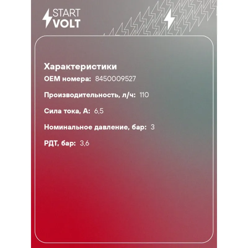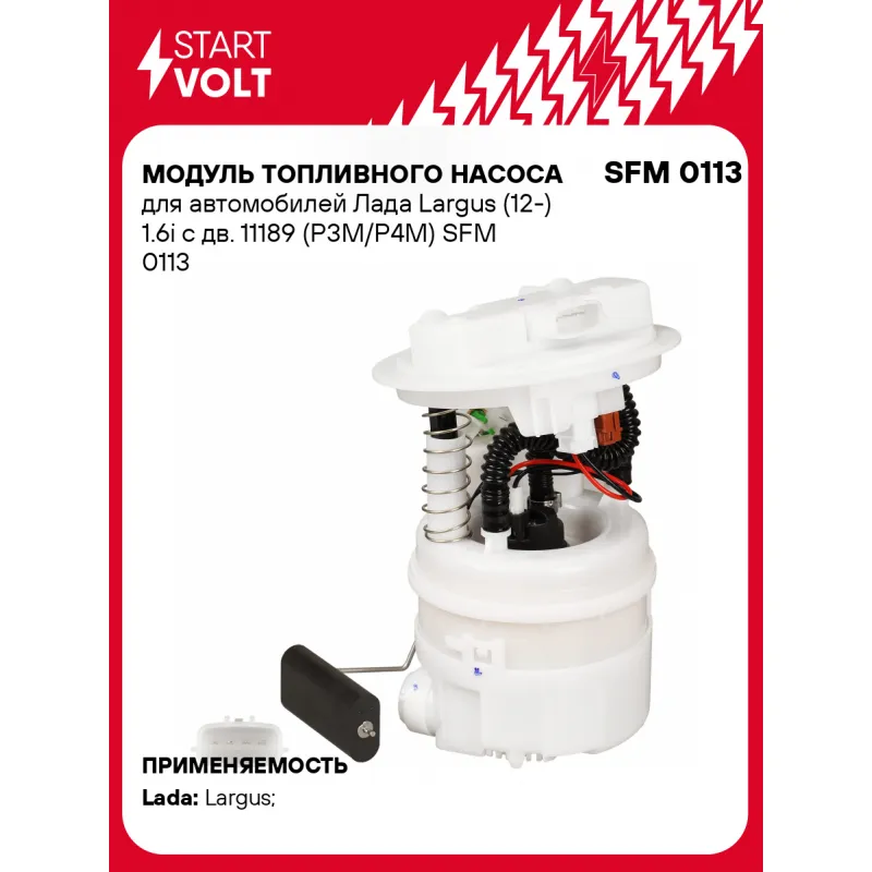 Модуль топливного насоса для автомобилей Лада Largus (12-) 1.6i с дв. 11189 (P3M/P4M) Характеристики: Артикул: SFM 0113 OEM номера: 8450009527 Производительность, л/ч: 110 Сила тока, А: 6,5 Номинальное давление, бар: 3 РДТ, бар: 3,6 Количество на автомобиль: 1 Подходит для авто: ВАЗ Largus (12-) Для проверки применяемости отправьте VIN автомобиля через вкладку "Есть вопросы о товаре?" Комплектация: Паспорт изделия/гарантийный талон - 1 шт Модуль топливного насоса - 1 шт Штанга датчика уровня топлива - 1 шт Гарантия: от 1 года.