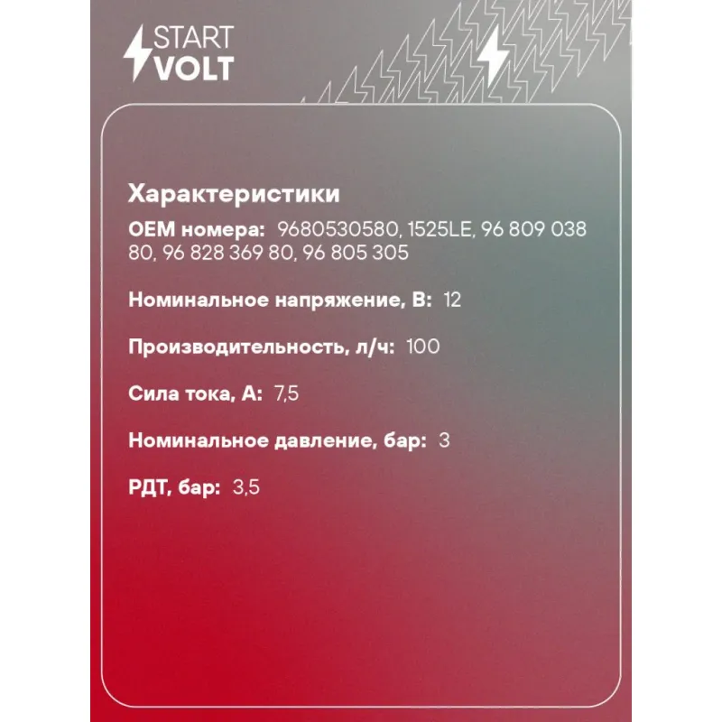 Модуль топливного насоса для автомобилей Peugeot 308 (07-)/Citroen C4 (04-) 1.6i Характеристики: Артикул: SFM 2002 OEM номера: 9680530580, 1525LE, 96 809 038 80, 96 828 369 80, 96 805 305 Номинальное напряжение, В: 12 Производительность, л/ч: 100 Сила тока, А: 7,5 Номинальное давление, бар: 3 РДТ, бар: 3,5 Количество на автомобиль: 1 Подходит для авто: Peugeot 307 (00-), 308 (07-), 308 (07-) Citroen C4 (04-) Для проверки применяемости отправьте VIN автомобиля через вкладку "Есть вопросы о товаре?" Комплектация: Паспорт изделия/гарантийный талон - 1 шт Модуль топливного насоса - 1 шт Гарантия: от 1 года.