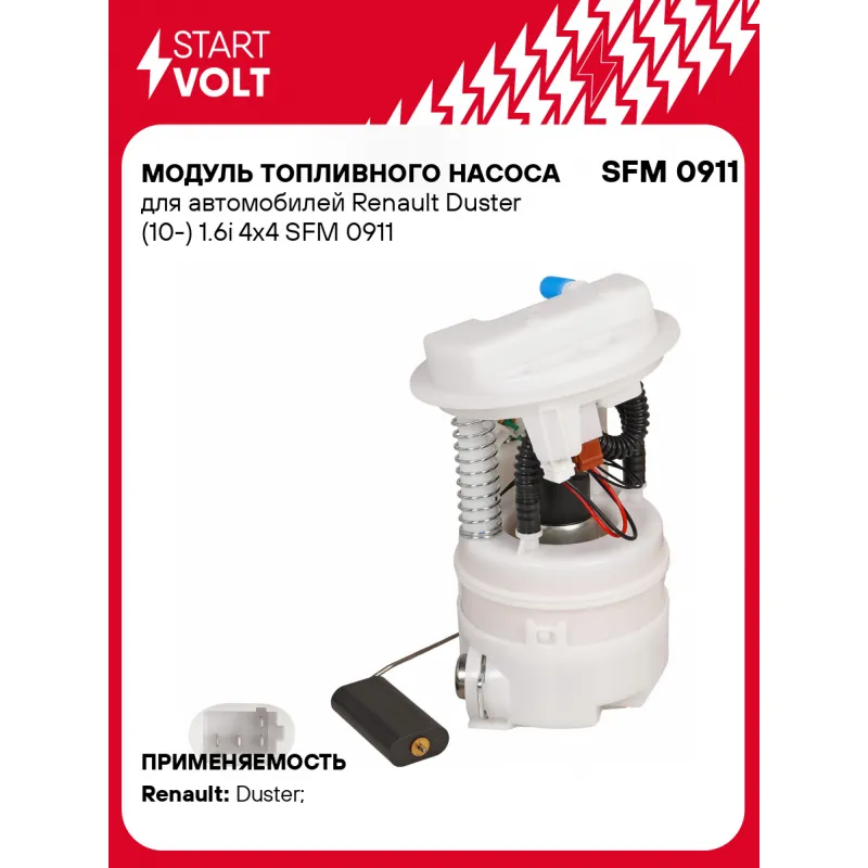 Модуль топливного насоса для автомобилей Renault Duster (10-) 1.6i 4x4 Характеристики: Артикул: SFM 0911 OEM номера: 172027786R, FG1036-12B1, 347285 Номинальное напряжение, В: 12 Производительность, л/ч: 80 Сила тока, А: 5,5 Номинальное давление, бар: 3 РДТ, бар: 3.5 Количество на автомобиль: 1 Подходит для авто: Renault Duster (10-) Для проверки применяемости отправьте VIN автомобиля через вкладку "Есть вопросы о товаре?" Комплектация: Паспорт изделия/гарантийный талон - 1 шт Модуль топливного насоса - 1 шт Штанга датчика уровня топлива - 1 шт Гарантия: от 1 года.