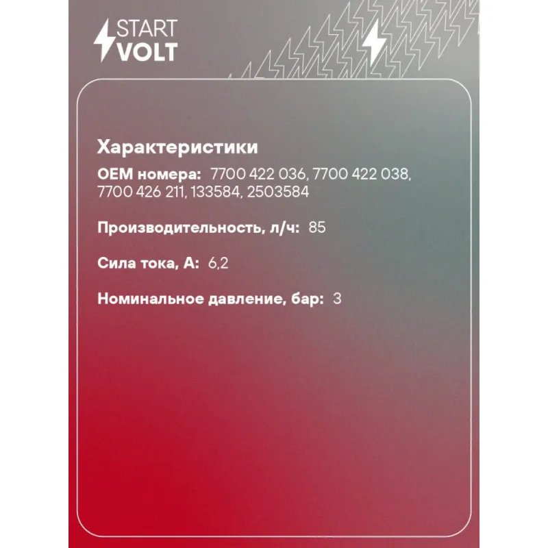 | Количество на автомобиль | 1 |