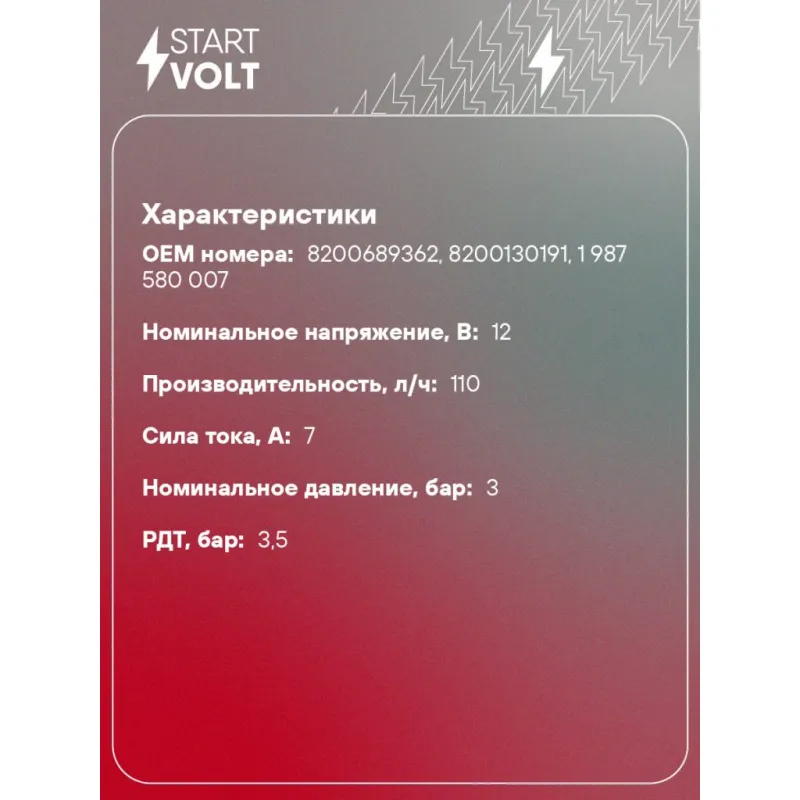 Модуль топливного насоса для автомобилей Renault Megane II (02-) 1.4i/1.6i/2.0i Характеристики: Артикул: SFM 0908 OEM номера: 8200689362, 8200130191, 1 987 580 007 Номинальное напряжение, В: 12 Производительность, л/ч: 110 Сила тока, А: 7 Номинальное давление, бар: 3 РДТ, бар: 3.5 Количество на автомобиль: 1 Подходит для авто: Renault Megane II (02-) Для проверки применяемости отправьте VIN автомобиля через вкладку "Есть вопросы о товаре?" Комплектация: Паспорт изделия/гарантийный талон - 1 шт Модуль топливного насоса - 1 шт Штанга датчика уровня топлива - 1 шт Гарантия: от 1 года.