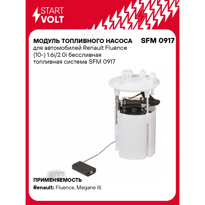 Модуль топливного насоса для автомобилей Renault Fluence (10-) 1.6i/2.0i бессливная топливная система SFM 0917 StartVolt