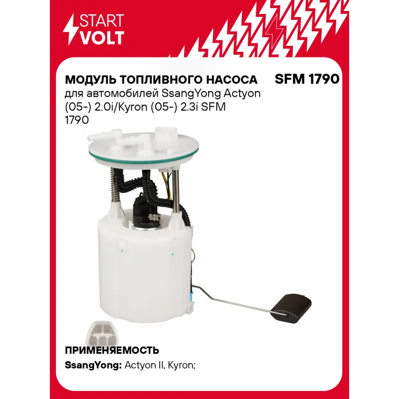 Модуль топливного насоса для автомобилей SsangYong Actyon (05-) 2.0i/Kyron (05-) 2.3i Характеристики: Артикул: SFM 1790 OEM номера: 2231009000 Производительность, л/ч: 155 Сила тока, А: 7,5 Номинальное давление, бар: 3 Количество на автомобиль: 1 Подходит для авто: SsangYong Actyon II (10-), Kyron (05-) Для проверки применяемости отправьте VIN автомобиля через вкладку "Есть вопросы о товаре?" Комплектация: Паспорт изделия/гарантийный талон - 1 шт Модуль топливного насоса - 1 шт Гарантия: от 1 года.