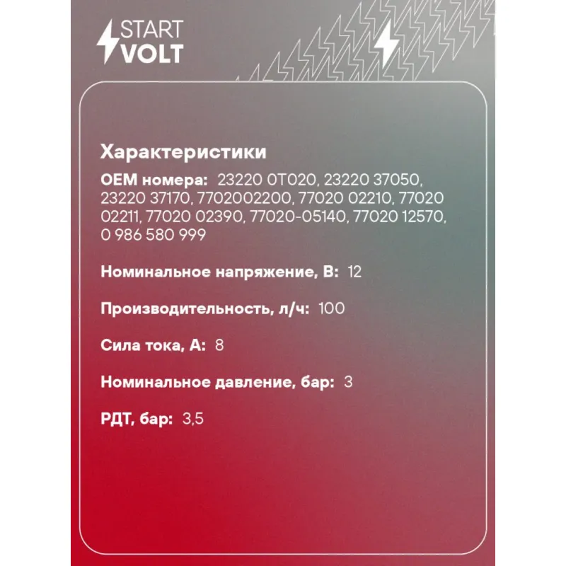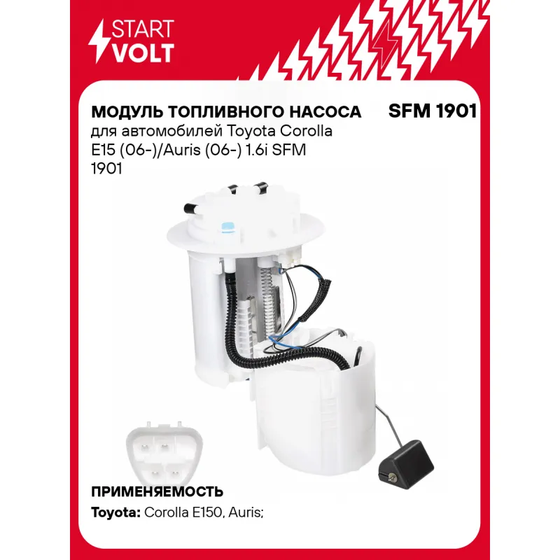 Модуль топливного насоса для автомобилей Toyota Corolla E15 (06-)/Auris (06-) 1.6i Характеристики: Артикул: SFM 1901 OEM номера: 23220 0T020, 23220 37050, 23220 37170, 7702002200, 77020 02210, 77020 02211, 77020 02390, 77020-05140, 77020 12570, 0 986 580 999 Номинальное напряжение, В: 12 Производительность, л/ч: 100 Сила тока, А: 8 Номинальное давление, бар: 3 РДТ, бар: 3,5 Количество на автомобиль: 1 Подходит для авто: Toyota Corolla E150 (06-), Auris (06-), Corolla E150 (06-), Auris (06-) Для проверки применяемости отправьте VIN автомобиля через вкладку "Есть вопросы о товаре?" Комплектация: Паспорт изделия/гарантийный талон - 1 шт Модуль топливного насоса - 1 шт Штанга датчика уровня топлива - 1 шт Гарантия: от 1 года.