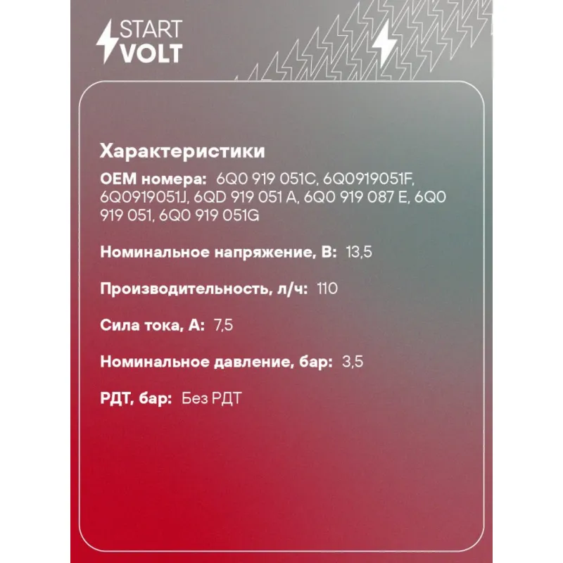 | Номинальное напряжение, В | 13.5 |
