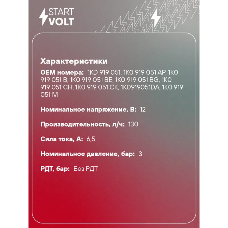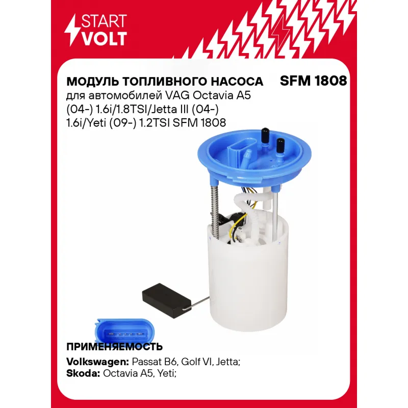 Модуль топливного насоса для автомобилей VAG Octavia A5 (04-) 1.6i/1.8TSI/Jetta III (04-) 1.6i/Yeti (09-) 1.2TSI Характеристики: Артикул: SFM 1808 OEM номера: 1KD 919 051, 1K0 919 051 AP, 1K0 919 051 B, 1K0 919 051 BE, 1K0 919 051 BG, 1K0 919 051 CH, 1K0 919 051 CK, 1K0919051DA, 1K0 919 051 M Номинальное напряжение, В: 12 Производительность, л/ч: 130 Сила тока, А: 6,5 Номинальное давление, бар: 3 РДТ, бар: без РДТ Количество на автомобиль: 1 Подходит для авто: Volkswagen Passat B6 (05-), Golf VI (08-), Jetta (05-), Golf V (03-), Jetta (05-) Skoda Octavia A5 (04-), Yeti (09-), Octavia A5 (04-) Для проверки применяемости отправьте VIN автомобиля через вкладку "Есть вопросы о товаре?" Комплектация: Паспорт изделия/гарантийный талон - 1 шт Модуль топливного насоса - 1 шт Гарантия: от 1 года.