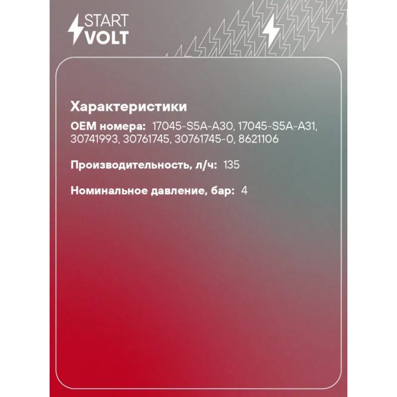 Модуль топливного насоса для автомобилей Volvo S60 (00-) 2.4i/XC70 (02-) 2.5T (SFM 1015) Характеристики: Артикул: SFM 1015 OEM номера: 17045-S5A-A30, 17045-S5A-A31, 30741993, 30761745, 30761745-0, 8621106 Производительность, л/ч: 135 Номинальное давление, бар: 4 Количество на автомобиль: 1 Подходит для авто: Volvo XC70 (00-) Для проверки применяемости отправьте VIN автомобиля через вкладку "Есть вопросы о товаре?" Комплектация: Паспорт изделия/гарантийный талон - 1 шт Модуль топливного насоса - 1 шт Гарантия: от 1 года.