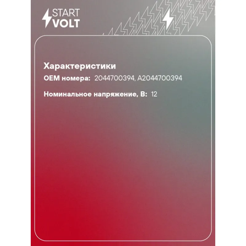| Номинальное напряжение, В | 12 |