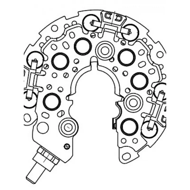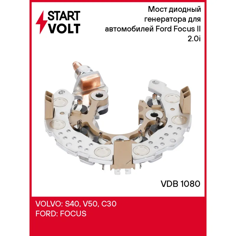 Мост диодный генератора для автомобилей Ford Focus II (04-) 2.0i Характеристики: Артикул: VDB 1080 OEM номера: 0215801840, INR437 Номинальное напряжение, В: 14 Количество диодов: 12 Размер резьбы болта B+: М8 Сила тока диода, А: 35 Количество на автомобиль: 1 Длина болта B+: 11.5 Дополнительные диоды: Нет Количество клемм к статору: 6 Комплектация: Паспорт изделия/гарантийный талон - 1 шт Мост диодный генератора - 1 шт Гарантия: от 1 года.