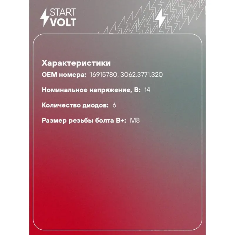 Мост диодный генератора для автомобилей Газон Next c дв. ЯМЗ-534 Характеристики: Артикул: VDB 0308 OEM номера: 16915780 Номинальное напряжение, В: 14 Количество диодов: 6 Размер резьбы болта B+: М8 Количество на автомобиль: 1 Подходит для авто: ГАЗ GAZon-Next (14-) Для проверки применяемости отправьте VIN автомобиля через вкладку "Есть вопросы о товаре?" Комплектация: Мост диодный генератора - 1 шт Паспорт изделия/гарантийный талон - 1 шт Гарантия: от 1 года.