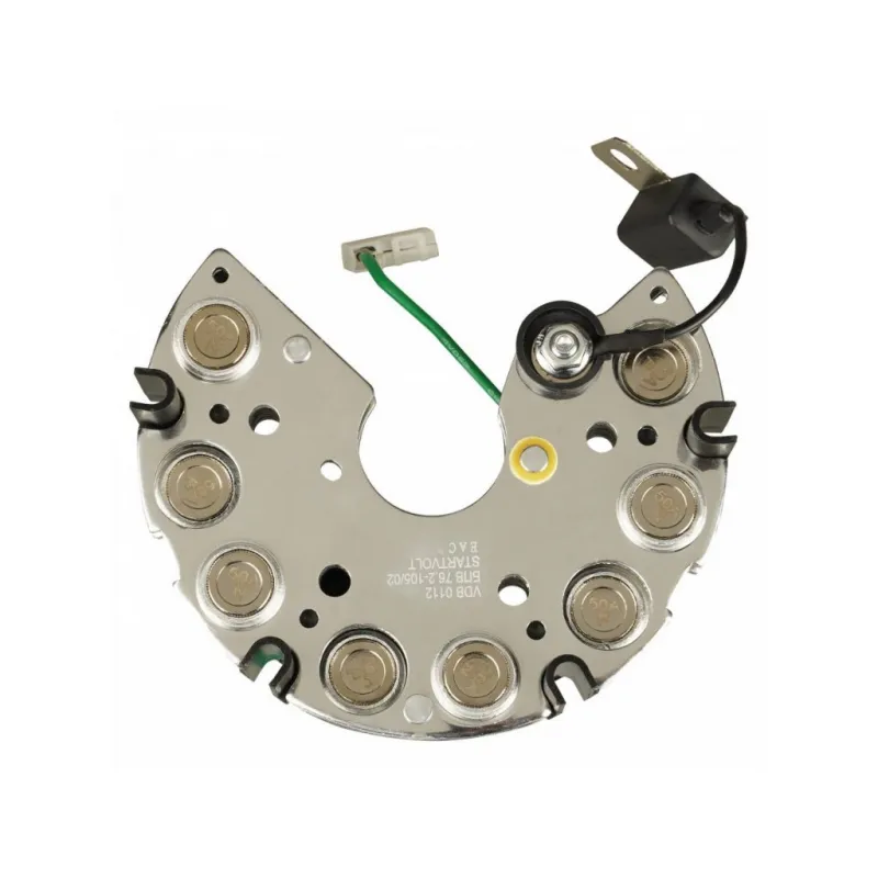 Мост диодный генератора для автомобилей Лада 2110-2112/2170-2172 (ан. БВО4-105-01) Характеристики: Артикул: VDB 0112 OEM номера: БВО4-105-01, БПВО 76.2-105/02 Сила тока диода, А: 50 Количество на автомобиль: 1 Дополнительные диоды: Нет Количество клемм к статору: 3 Номинальное напряжение, В: 14 Количество диодов: 8 Размер резьбы болта B+: М6 Подходит для авто: ВАЗ Priora (07-), 2110, 2111, 2112 Для проверки применяемости отправьте VIN автомобиля через вкладку "Есть вопросы о товаре?" Комплектация: Паспорт изделия/гарантийный - 1 шт Мост диодный генератора - 1 шт Гарантия: от 1 года.