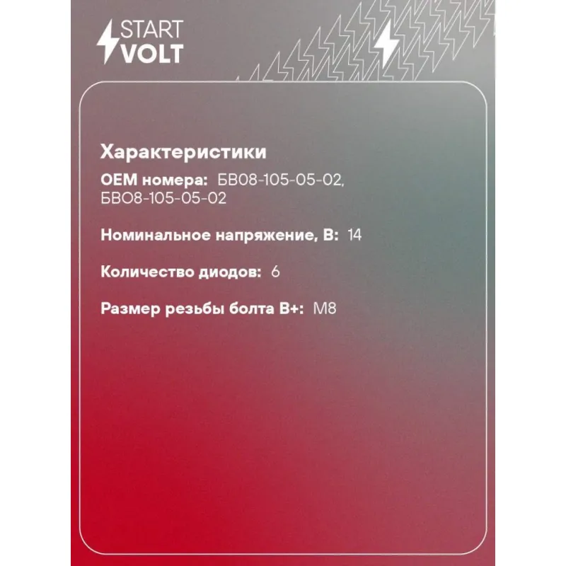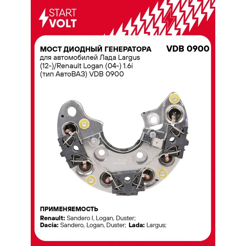Мост диодный генератора для автомобилей Лада Largus (12-)/Renault Logan (04-) 1.6i (тип АвтоВАЗ) VDB 0900 StartVolt