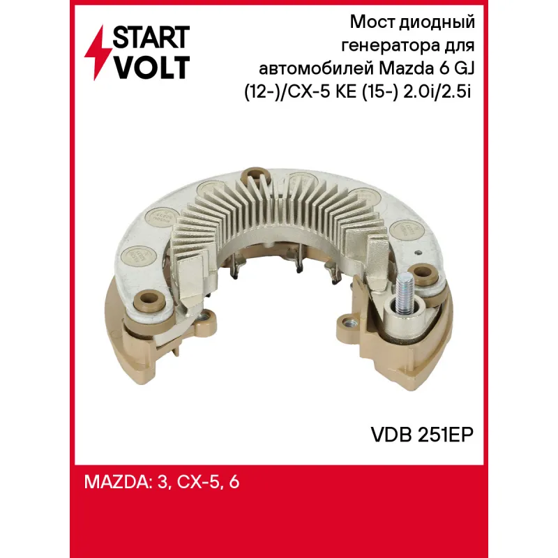 Мост диодный генератора для автомобилей Mazda 6 GJ (12-)/CX-5 KE (15-) 2.0i/2.5i (под тахом.) VDB 251EP StartVolt