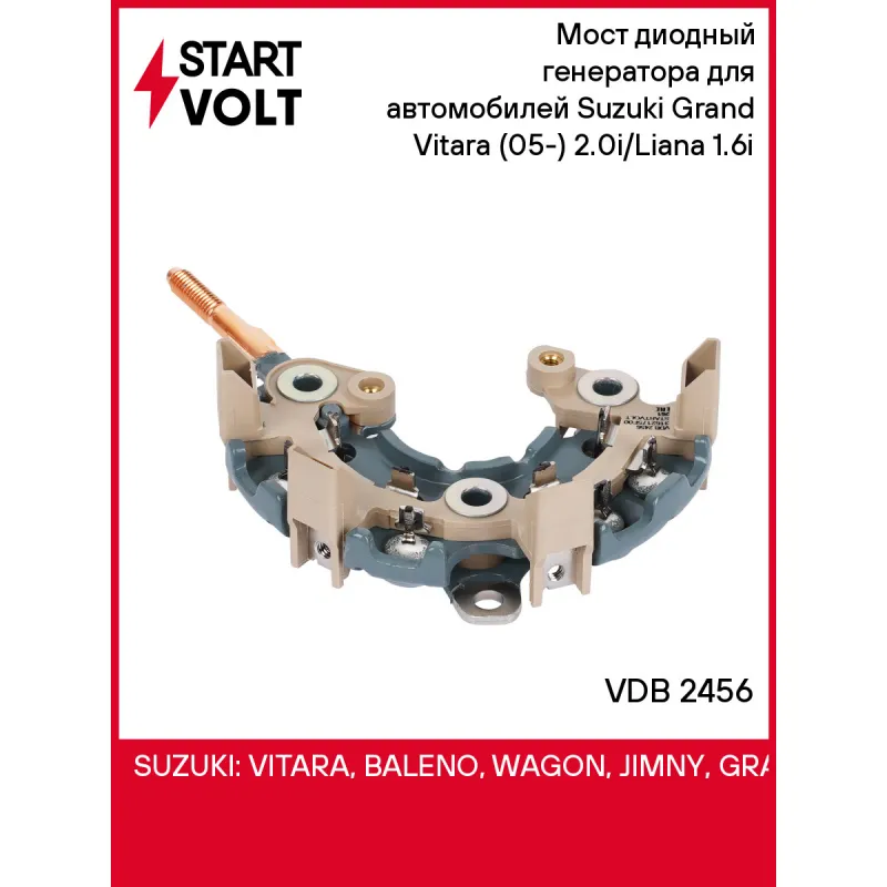 Мост диодный генератора для автомобилей Suzuki Grand Vitara (05-) 2.0i/Liana (02-) 1.6i VDB 2456 StartVolt