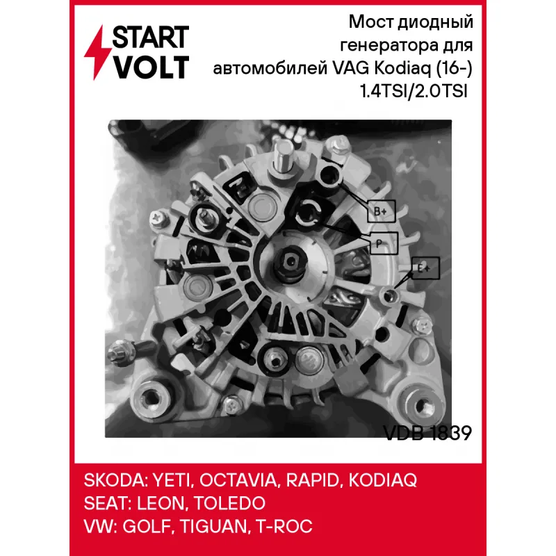 Мост диодный генератора для автомобилей VAG Kodiaq (16-) 1.4TSI/2.0TSI (с крышкой) Характеристики: Артикул: VDB 1839 OEM номера: 03L 903 023 J, 03L903023JX, 03L903023S, 03L903023SX, 3L903023J, 3L903023S, 3L903023SX, 439874, TG12C113 Номинальное напряжение, В: 14 Количество диодов: 6 Сила тока диода, А: 50 Количество на автомобил... Читать полностью →