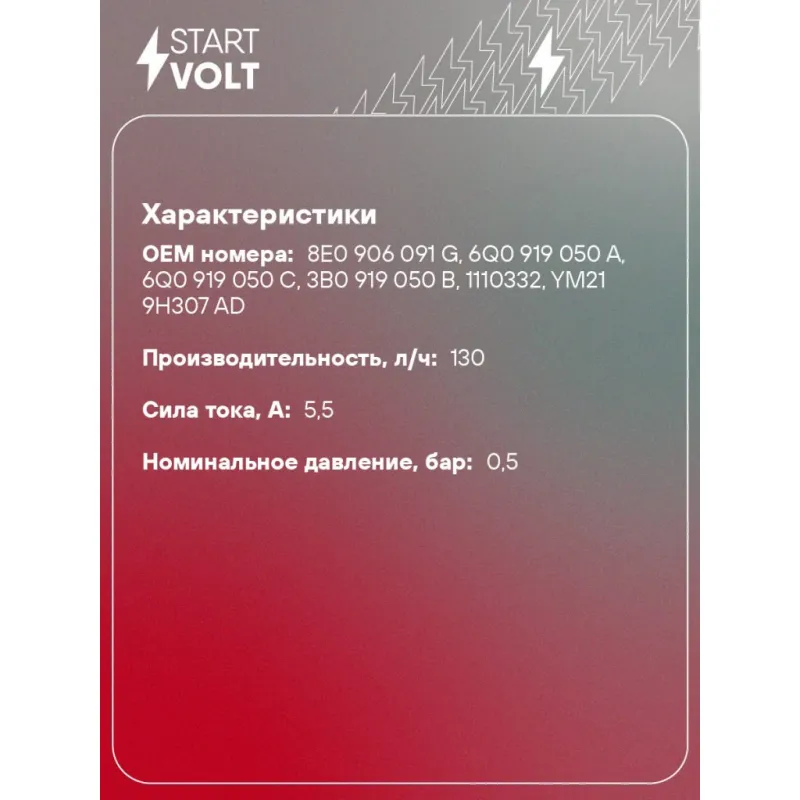 | Количество на автомобиль | 1 |