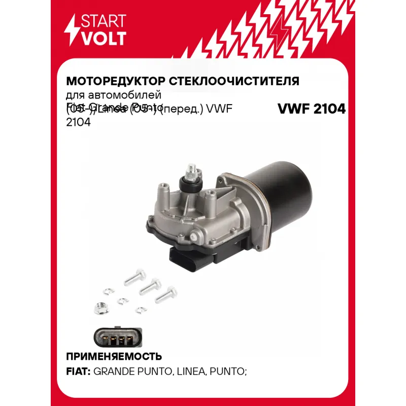 Моторедуктор стеклоочистителя для автомобилей Fiat Grande Punto (05-)/Linea (05-) (перед.) Характеристики: Артикул: VWF 2104 OEM номера: 98846221 Количество на автомобиль: 1 Сторона установки: спереди Номинальное напряжение, В: 12 Сила тока при малой скорости вращения, А: 4,5 Малая скорость вращения, об/мин: 35 Крутящий момент при малой скорости вращения, Н*м: 25 Диаметр выходного вала: 12 Мощность, Вт: 50 Комплектация: Моторедуктор стеклоочистителя - 1 шт Паспорт изделия/гарантийный талон - 1 шт Болт - 3 шт Пружинная шайба - 3 шт Гайка - 1 шт Гарантия: от 1 года.