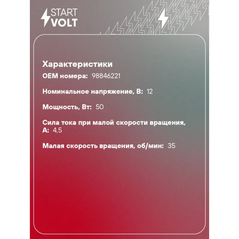 | Сила тока при малой скорости вращения, А | 4,5 |