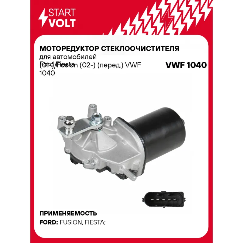 Моторедуктор стеклоочистителя для автомобилей Ford Fiesta (01-)/Fusion (02-) (перед.) Характеристики: Артикул: VWF 1040 OEM номера: 1 740 714, 1140531, 1143827, 2S6T-17B571-AB, 2S6T-17B571-AC, 2S6T-17B571-AD Количество на автомобиль: 1 Сторона установки: спереди Номинальное напряжение, В: 12 Сила тока при малой скорости вращения, А: 4,5 Малая скорость вращения, об/мин: 36 Крутящий момент при малой скорости вращения, Н*м: 22 Диаметр выходного вала: - Мощность, Вт: 50 Угол поворота выходного вала, градус: - Комплектация: Моторедуктор стеклоочистителя - 1 шт Паспорт изделия/гарантийный талон - 1 шт Гарантия: от 1 года.