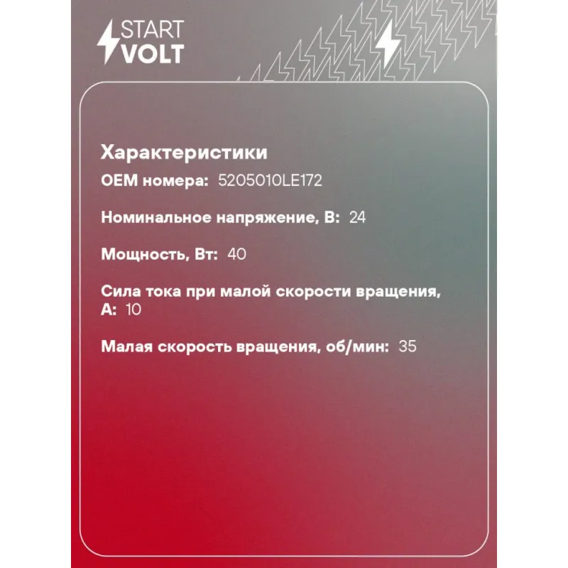 | Сила тока при малой скорости вращения, А | 10 |