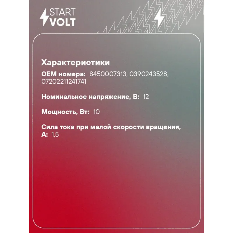 | Сила тока при малой скорости вращения, А | 1.5 |