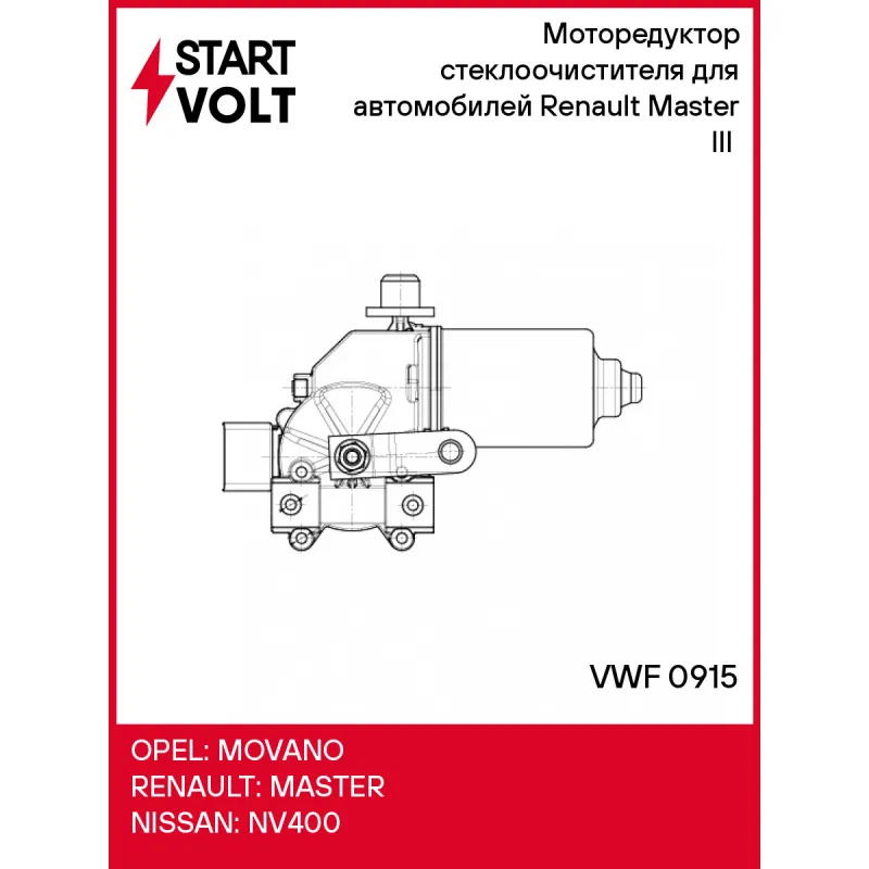 Моторедуктор стеклоочистителя для автомобилей Renault Master III (10-) Характеристики: Артикул: VWF 0915 OEM номера: 8200734788 Номинальное напряжение, В: 12 Мощность, Вт: 70 Сила тока при малой скорости вращения, А: 25 Малая скорость вращения, об/мин: 35 Крутящий момент при малой скорости вращения, Н*м: 35 Диаметр выходного вала: - Сторона установки: спереди Угол поворота выходного вала, градус: - Количество на автомобиль: 1 Комплектация: Моторедуктор стеклоочистителя - 1 шт Паспорт изделия/гарантийный талон - 1 шт Гарантия: от 1 года.