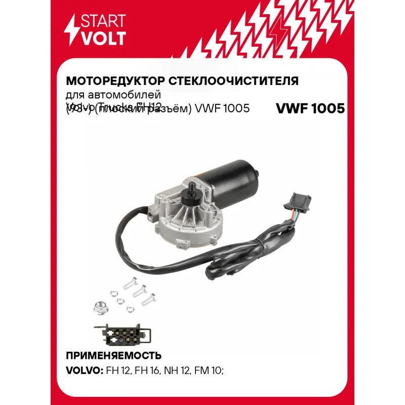 Моторедуктор стеклоочистителя для автомобилей Volvo Trucks FH12 (93-) (плоский разъём) Характеристики: Артикул: VWF 1005 OEM номера: 1063838, 8143408 Количество на автомобиль: 1 Сторона установки: спереди Номинальное напряжение, В: 24 Сила тока при малой скорости вращения, А: 22 Малая скорость вращения, об/мин: 25 Крутящий момент при малой скорости вращения, Н*м: 33 Диаметр выходного вала: 12 Мощность, Вт: 70 Комплектация: Паспорт изделия/гарантийный талон - 1 шт Моторедуктор стеклоочистителя - 1 шт Болт - 3 шт Пружинная шайба - 3 шт Гайка - 1 шт Гарантия: от 1 года.