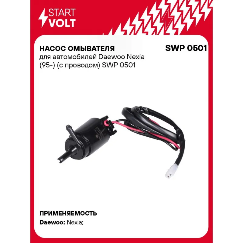 Насос омывателя для автомобилей Daewoo Nexia (95-) (с проводом) Характеристики: Артикул: SWP 0501 OEM номера: 96121163, 96121163a Номинальное напряжение, В: 12 Давление, КПа: 200 Количество на автомобиль: 1 Подходит для авто: Daewoo Nexia (94-), Nexia (94-) Для проверки применяемости отправьте VIN автомобиля через вкладку "Есть вопросы о товаре?" Комплектация: Паспорт изделия/гарантийный талон - 1 шт Насос омывателя - 1 шт Гарантия: от 1 года.