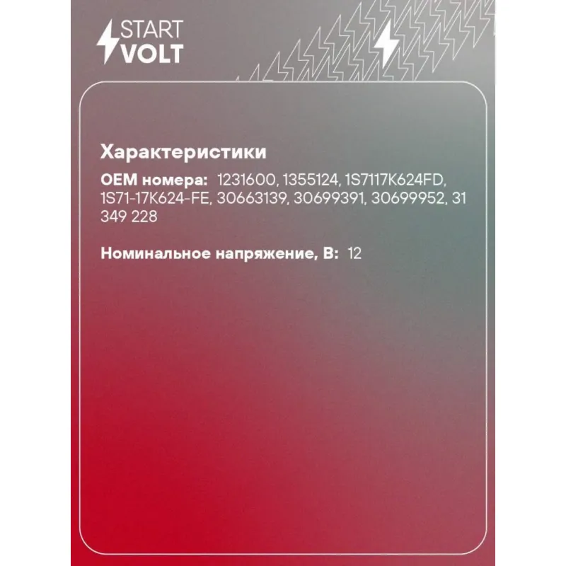 | Номинальное напряжение, В | 12 |