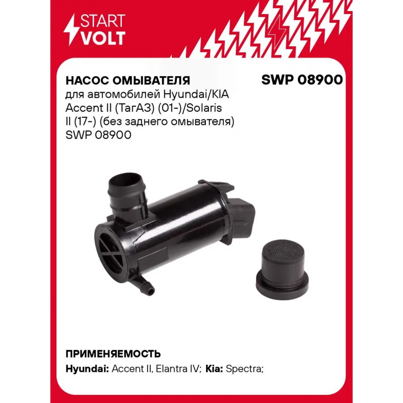 Насос омывателя для автомобилей Hyundai/KIA Accent II (ТагАЗ) (01-)/Solaris II (17-) (без заднего омывателя) Характеристики: Артикул: SWP 08900 OEM номера: 98510-25000 , 98510-22000 , 98510-G8000, 98510-1F000 Количество на автомобиль: 1 Номинальное напряжение, В: 12 Давление, КПа: 137 Подходит для авто: Hyundai Accent II (TagAZ) (01-), Elantra IV (06-), Elantra III (00-) Kia Spectra (00-) Для проверки применяемости отправьте VIN автомобиля через вкладку "Есть вопросы о товаре?" Комплектация: Паспорт изделия/гарантийный талон - 1 шт Насос омывателя - 1 шт Уплотнитель - 1 шт Гарантия: от 1 года.