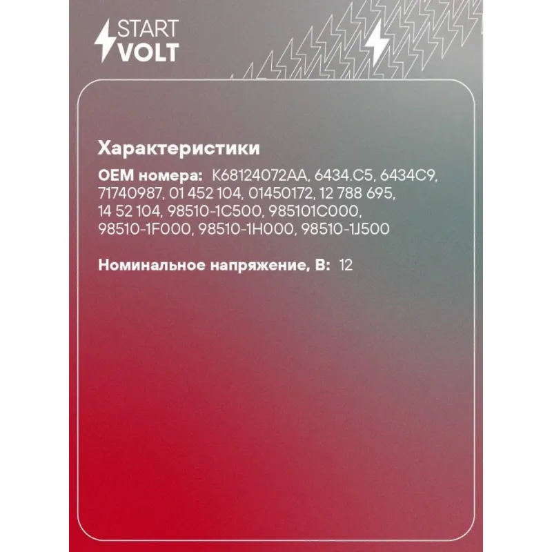 | Номинальное напряжение, В | 12 |