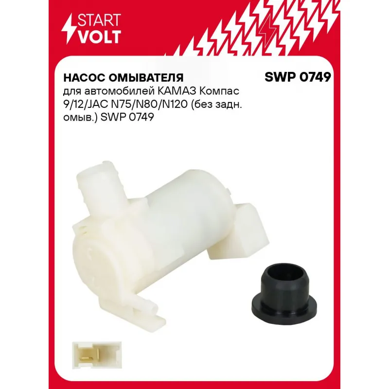Насос омывателя для автомобилей КАМАЗ Компас 9/12/JAC N75/N80/N120 (без задн. омыв.) Характеристики: Артикул: SWP 0749 OEM номера: 5207012LE010 Номинальное напряжение, В: 24 Давление, КПа: 160 Количество на автомобиль: 1 Комплектация: Насос омывателя - 1 шт Паспорт изделия/гарантийный талон - 1 шт Гарантия: от 1 года.