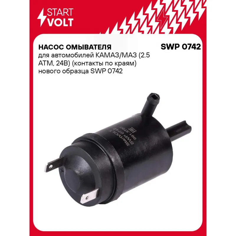 Насос омывателя для автомобилей КАМАЗ/МАЗ (2.5 АТМ, 24В) (контакты по краям) нового образца SWP 0742 StartVolt