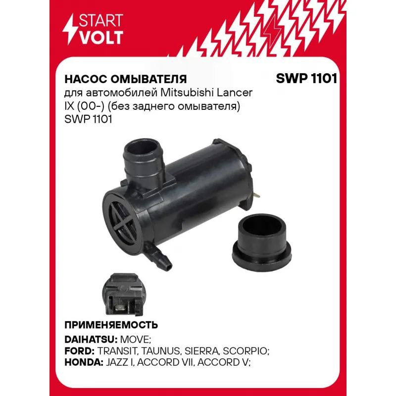 Насос омывателя для автомобилей Mitsubishi Lancer IX (00-) (без заднего омывателя) Характеристики: Артикул: SWP 1101 OEM номера: 4000688, 6 084 227, 6 085 824, 6 088 269, 6 120 440, 6140949, 6156960, 83BB-17K624-AA, 83BB-17K624-BA, 38512S3VA01, 38512SC4673, 38512SDAA01, 76806SAA315, 76806SH3003, 76806SV5A02, B25D67482, B25D67482A, DB0267482, GA2A67482, LA0167482, S08476672, MR 245368, MB282691, MB358361, MR155254, 274904A00B, 3841066113, 686219010, 786611040, 786621000, 3841065D00000, 3841066112000, 3841066113000, 8531010140, 8531022080, 8531089114, 8531090B00, 8533012320, 0K62067483A, 9851014000, 3F76055760, 84420264, 6664554 Номинальное напряжение, В: 12 Давление, КПа: 160 Количество на автомобиль: 1 Комплектация: Насос омывателя - 1 шт Паспорт изделия/гарантийный талон - 1 шт Гарантия: от 1 года.
