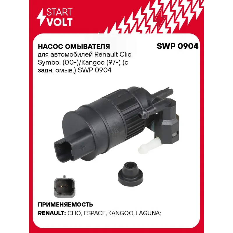 Насос омывателя для автомобилей Renault Clio Symbol (00-)/Kangoo (97-) (с задн. омыв.) SWP 0904 StartVolt