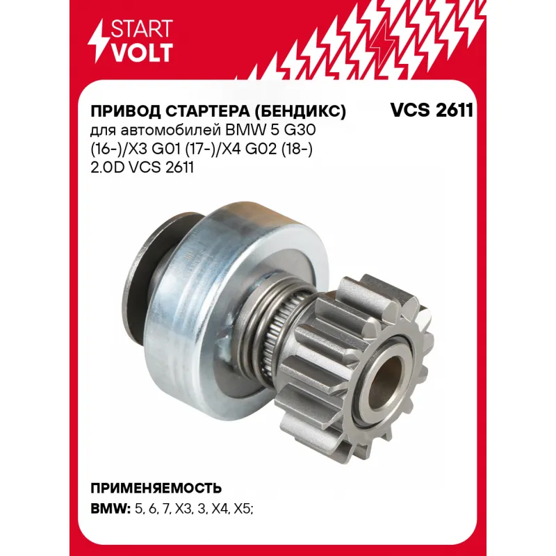 Привод стартера (бендикс) для автомобилей BMW 5 G30 (16-)/X3 G01 (17-)/X4 G02 (18-) 2.0D VCS 2611 StartVolt