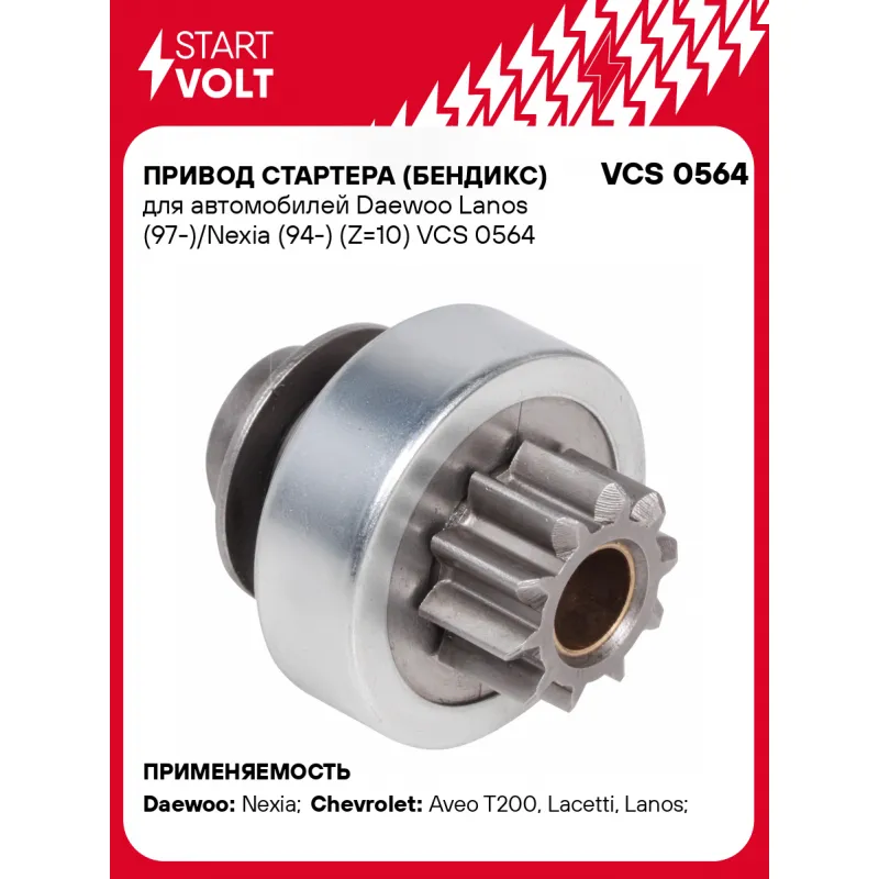 Привод стартера (бендикс) для автомобилей Daewoo Lanos (97-)/Nexia (94-) (Z=10) Характеристики: Артикул: VCS 0564 OEM номера: 77362459, A0011513913, 0011513913, 11513913, 1203153, 5835F0, 90543810, 7701040831, 7701052601, 594177 Количество на автомобиль: 1 Число зубьев: 10 Внешний диаметр зубьев: 27,7 Направление вращения: по часовой стрелке Длина бендикса, мм: 51 Количество шлицов: 10 Подходит для авто: Daewoo Nexia (94-) Chevrolet Aveo T200 (02-), Lacetti (02-), Lanos (97-) Для проверки применяемости отправьте VIN автомобиля через вкладку "Есть вопросы о товаре?" Комплектация: Паспорт изделия/гарантийный талон Привод стартера (бендикс) - 1 шт Гарантия: от 1 года.