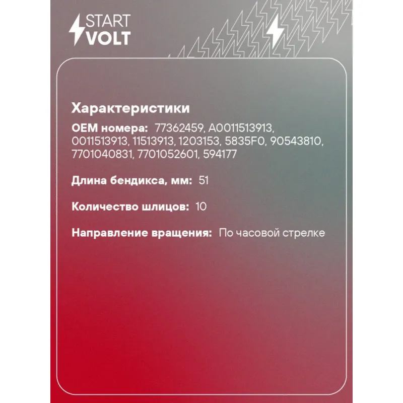 | Длина бендикса, мм | 51 |