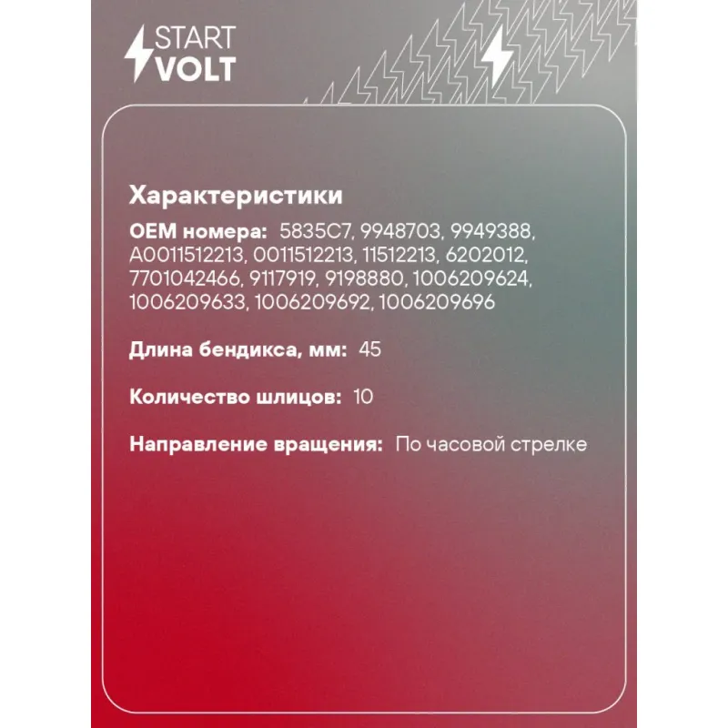 | Длина бендикса, мм | 45 |