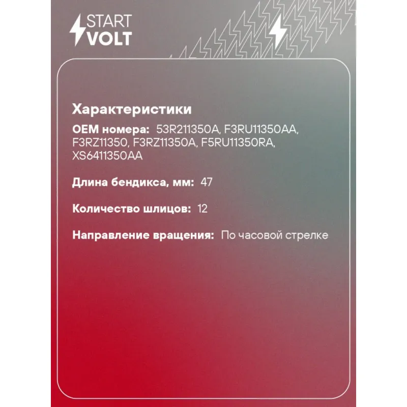 | Длина бендикса, мм | 47 |