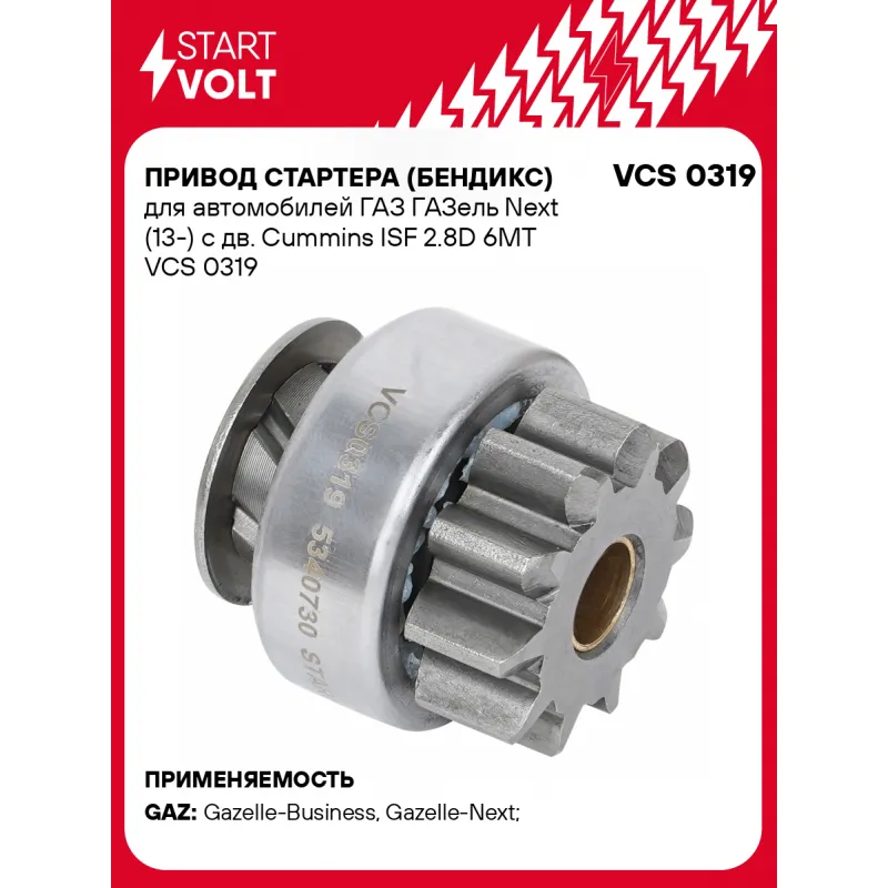 Привод стартера (бендикс) для автомобилей ГАЗ ГАЗель Next (13-) с дв. Cummins ISF 2.8D 6MT VCS 0319 StartVolt