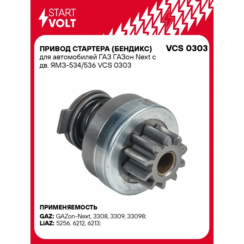 Привод стартера (бендикс) для автомобилей ГАЗ ГАЗон Next с дв. ЯМЗ-534/536 Характеристики: Артикул: VCS 0303 OEM номера: 16.913.295 Направление вращения: по часовой стрелке Внешний диаметр зубьев: 38,5 Число зубьев: 10 Длина бендикса, мм: 82 Количество шлицов: 10 Количество на автомобиль: 1 Подходит для авто: ГАЗ GAZon-Next (14-), 3308, 3309, 33098 ЛиАЗ 5256, 6212, 6213 Для проверки применяемости отправьте VIN автомобиля через вкладку "Есть вопросы о товаре?" Комплектация: Паспорт изделия/гарантийный талон Привод стартера (бендикс) - 1 шт Гарантия: от 1 года.