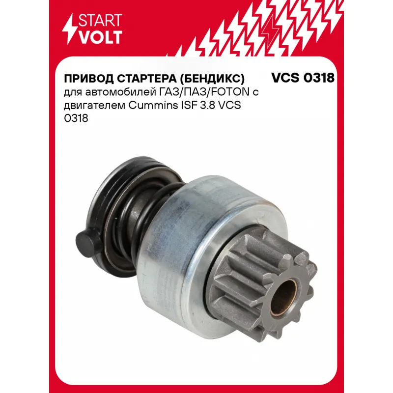 Привод стартера (бендикс) для автомобилей ГАЗ/ПАЗ/FOTON с двигателем Cummins ISF 3.8 Характеристики: Артикул: VCS 0318 OEM номера: 5268413, 5263841, 5319202 Количество на автомобиль: 1 Число зубьев: 10 Внешний диаметр зубьев: 18,9 Направление вращения: по часовой стрелке Длина бендикса, мм: 86 Количество шлицов: 10 Комплектация: Паспорт изделия/гарантийный талон Привод стартера (бендикс) - 1 шт Гарантия: от 1 года.