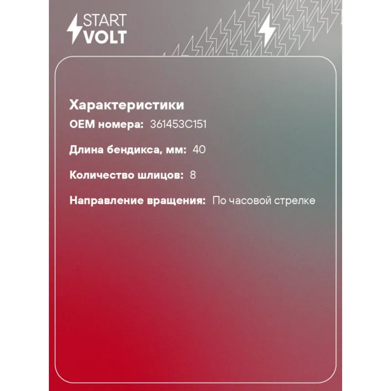 Привод стартера (бендикс) для автомобилей Hyundai Santa Fe (18-)/ix55 (07-) 3.5i/3.8i Характеристики: Артикул: VCS 0808 OEM номера: 361453C151 Направление вращения: по часовой стрелке Внешний диаметр зубьев: 27,9 Число зубьев: 10 Длина бендикса, мм: 40 Количество шлицов: 8 Количество на автомобиль: 1 Комплектация: Привод стартера (бендикс) - 1 шт Паспорт изделия/гарантийный талон Гарантия: от 1 года.