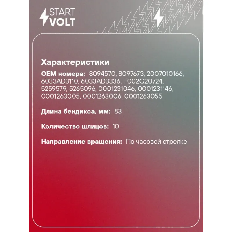 | Длина бендикса, мм | 83 |